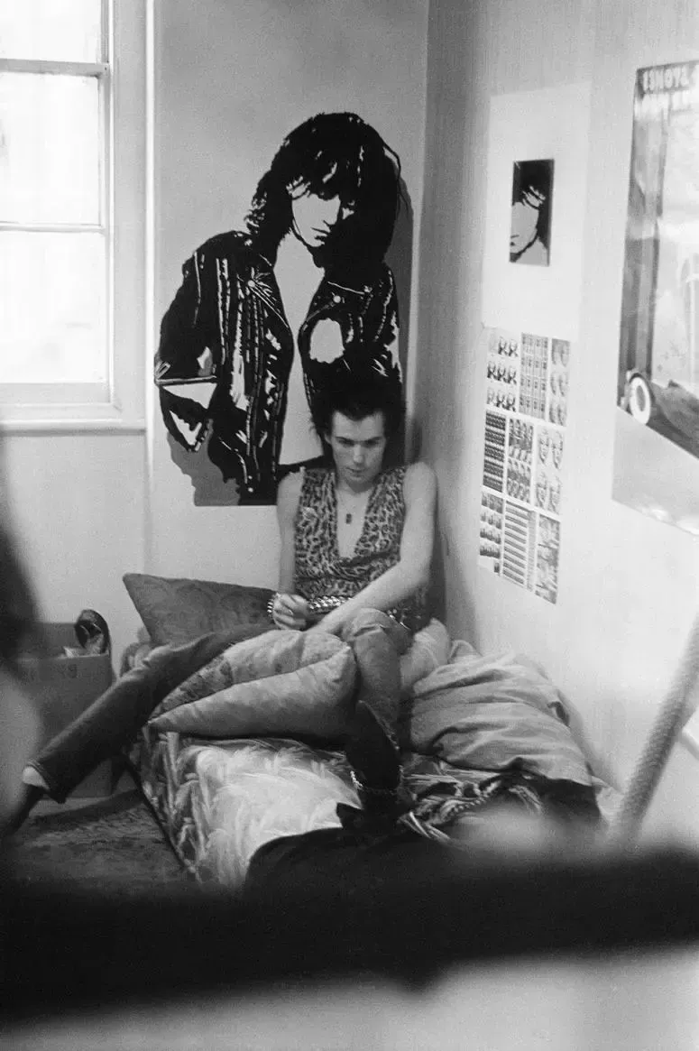 Sid Vicious, baixista i vocalista de la banda de punk rock Sex Pistols, fotografiat cap al 1978. Icona del moviment punk i addicte a les drogues, Sid Vicious va morir d'una sobredosi d'heroïna el 2 de febrer de 1979, amb 21 anys. Mesos abans havia mort la seva parella, Nancy Spungen, de la qual el músic va ser acusat d'assassinat.
