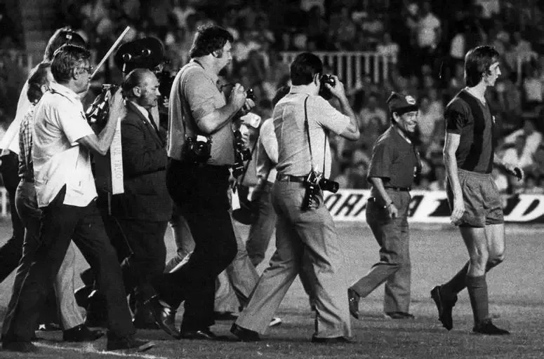 Els fotògrafs persegueixen a Cruyff el dia del seu debut l'any 1973.