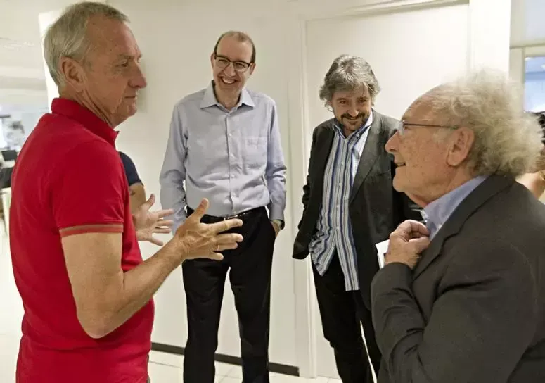 Johan Cruyff i Eduard Punset es van trobar a la redacció del Diari ARA amb en Carles Capdevila i Antoni Bassas.