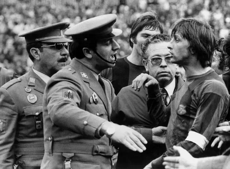 L'any 1975 en un partit contra el Màlaga, Johan Cruyff va ser expulsat del camp per la policia.