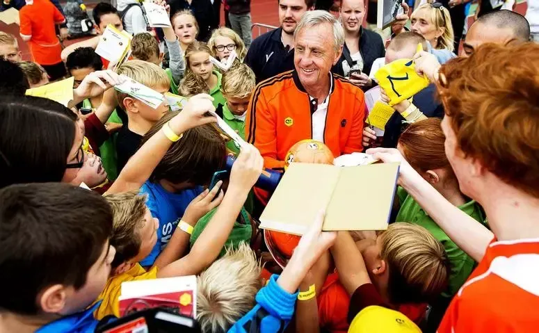 Johan Cruyff firmant autògrafs durant una jornada de portes obertes de la Fundació Johan Cruyff a Amsterdam.