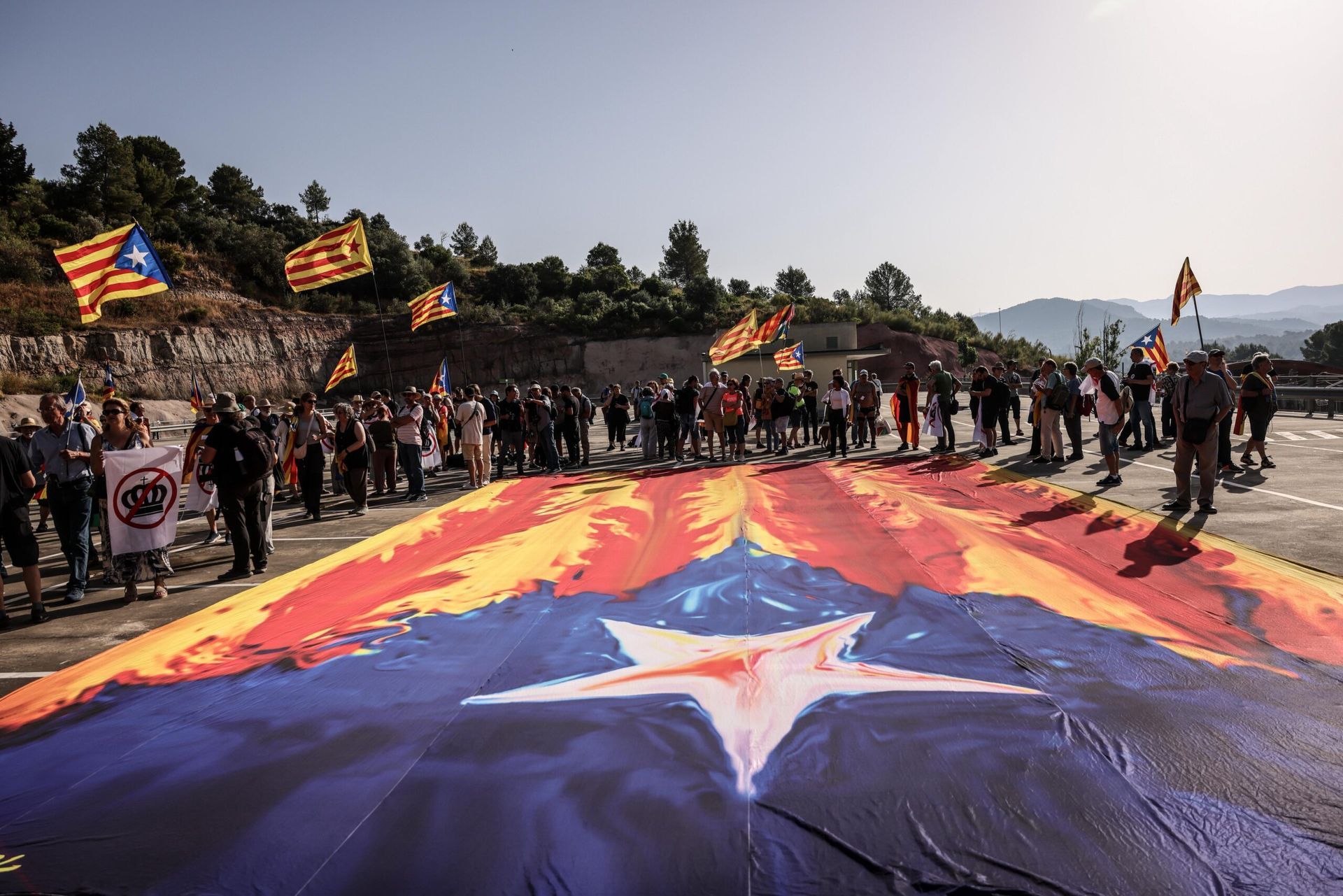 Una gran estelada espera el rei espanyol Felipe VI al cim de Montserrat (fotografia: Àngel Garcia)