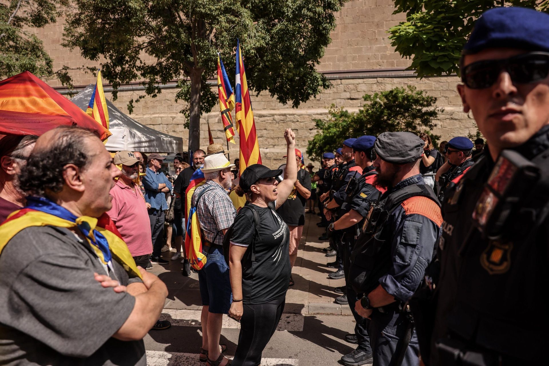 Els Mossos d'Esquadra han requisat algunes estelades, segons que ha dit l'ANC, tot i que després han confirmat que en requisaven els pals i prou (fotografia: Àngel Garcia).