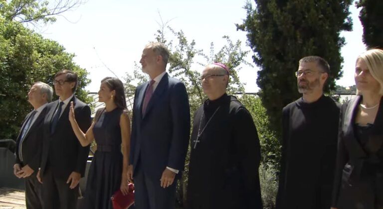 Els reis espanyols, als jardins del monestir de Montserrat.